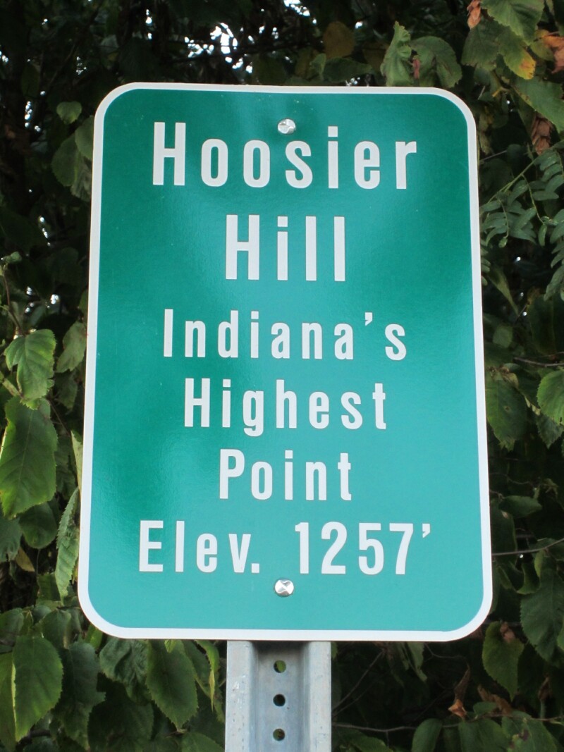 We began to see a few (very few) signs for Indiana's highest point. These signs were along pretty, country roads that were surrounded by corn fields; the kinds of roads that The Colonel and I rode our bikes on as children.